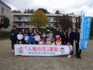 本日、人権擁護委員の方々と「人権の花」運動を行いました。この運動は、学校に配布した花の種子や球根などを、こどもたちが協力し育てることによって、生命の尊さを実感し、その中で、豊かな心を育み、優しさと思いやりの心を体得することを目的としたものです。今回頂いたチューリップの球根は、環境委員を中心に大切に育てていきます。